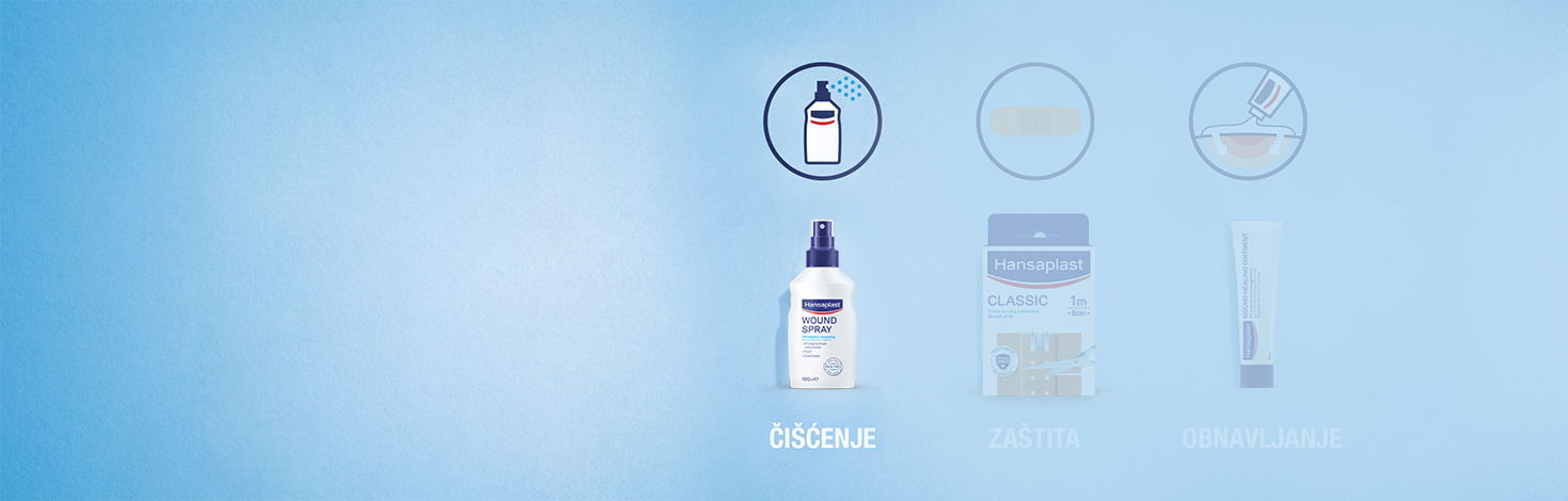 Manje rane i ogrebotine su vrlo česte. Hansaplast vam donosi učinkovite proizvode za čišćenje, zaštitu i njegu rana. Za brzo i bezbolno čišćenje površinske ozljede od prljavštine i bakterija preporučujemo Hansaplast antibakterijski sprej. Formula bez boje i mirisa učinkovito će zaštititi površinsku ozljedu od infekcije. Prikladno za korištenje na dječjoj i osjetljivoj koži.