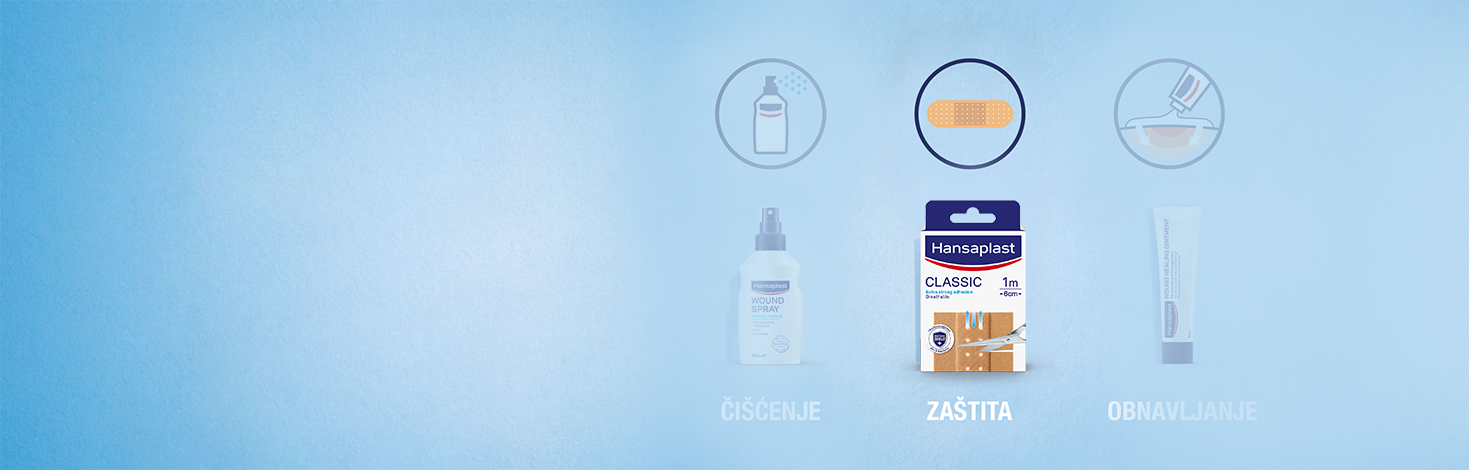 Vlažno zacjeljivanje: Zaštita površinske ozljede pomoću principa vlažnog zacjeljivanja poduprijet će prirodni proces ozdravljenja. Ova metoda koristi se u bolnicama za liječenje kroničnih ozljeda i za dokazano sigurnije, potpunije i brže obnavljanje s maksimalnim estetskim učinkom bez ožiljaka za razliku od sušenja površinske ozljede.